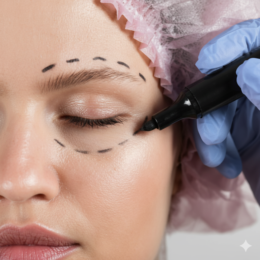 La duración de la intervención es aproximadamente de 45 a 60 minutos y se realiza bajo anestesia local, por lo que no se suele requerir pasar la noche en la clínica. Esta cirugía conlleva pequeñas incisiones para extirpar una cantidad especifica de piel, consiguiendo así realzar las cejas; son realizadas en el borde superior de la misma ceja, próxima al pelo, o en la zona de las entradas del pelo, evitando así que la cicatriz sea visible. Las incisiones serán cerradas con suturas intradérmicas y muy finas.